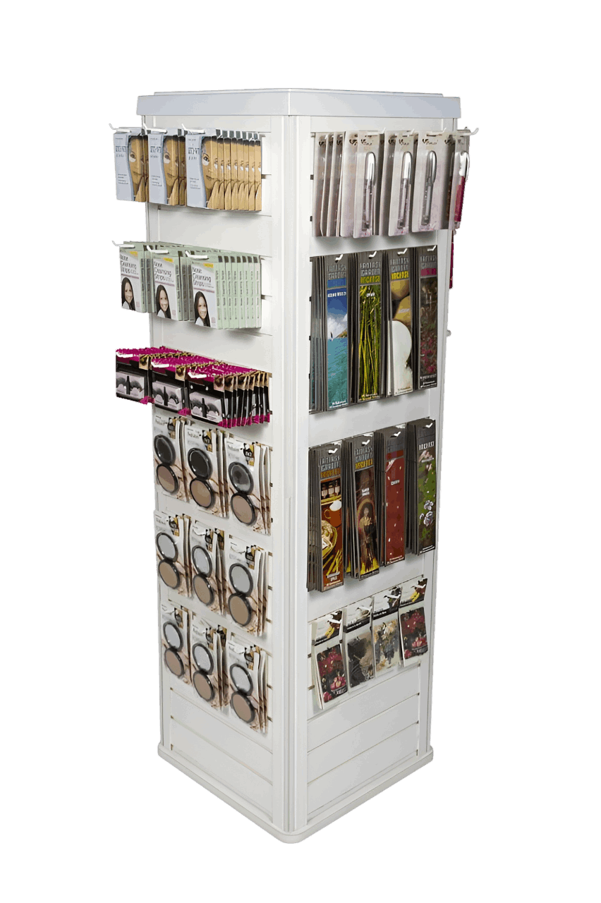 Our Store Display Merchandisers are built to last. To lower freight costs and damage during shipping, all floor displays are shipped “knock down”. Each unit has been designed for quick and easy assembly. Whether it is one display or a national “roll-out”, quality and service are guaranteed. Choose from an excellent range of ready-to-ship displays or call our knowledgeable design staff to discuss your custom display requirements.